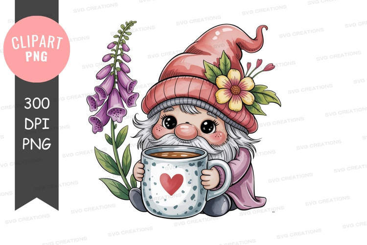Similar Design Products to Cute gnome holding coffee cup with flower image
