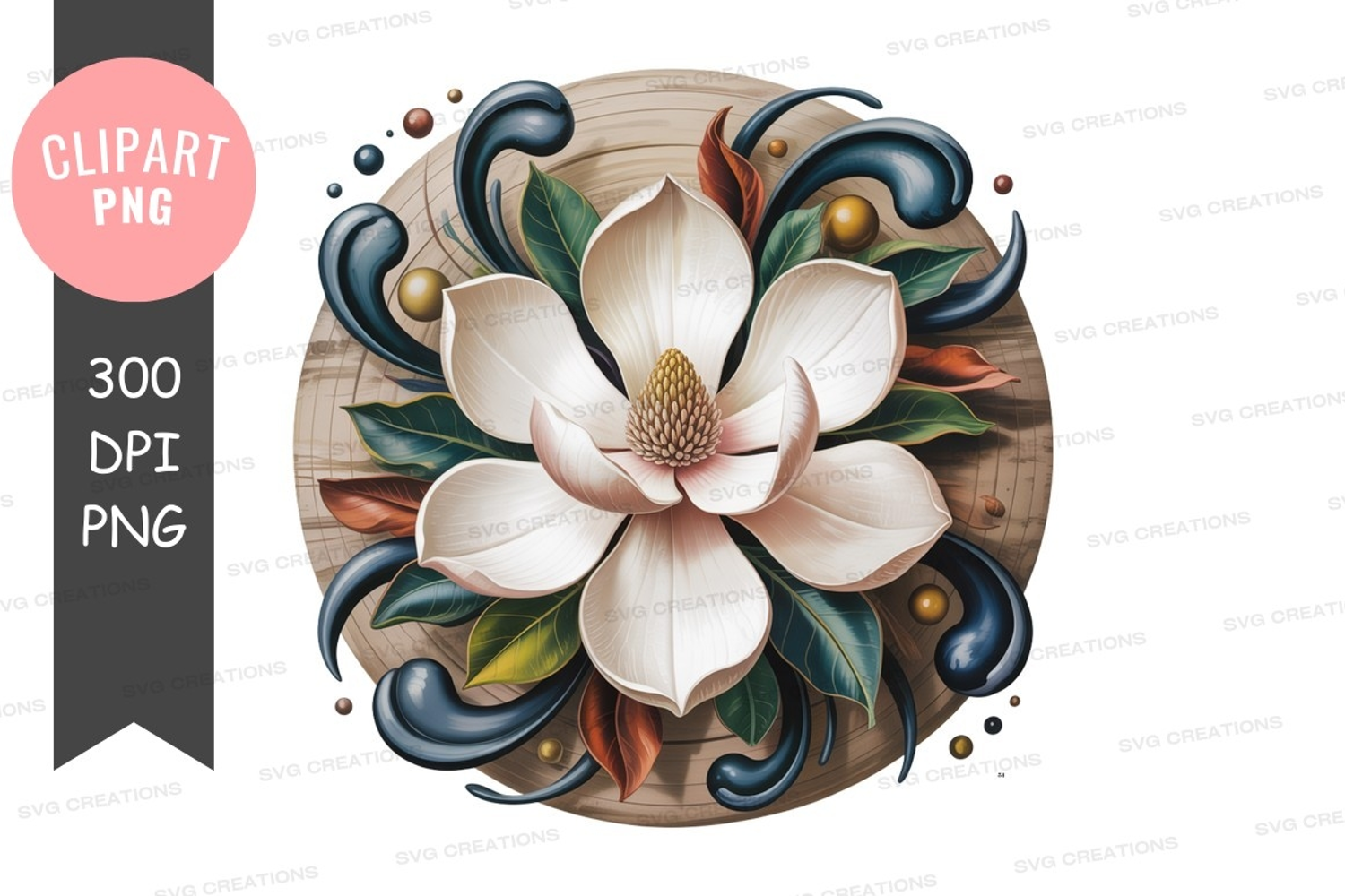 Similar Design Products to White magnolia bloom dark blue swirls petals green