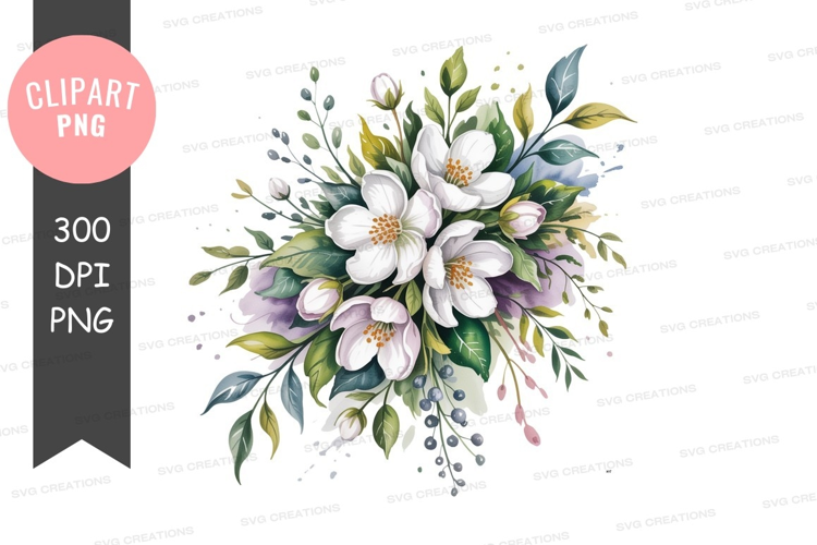 White Jasmine Blossom Arrangement green purple example image 1