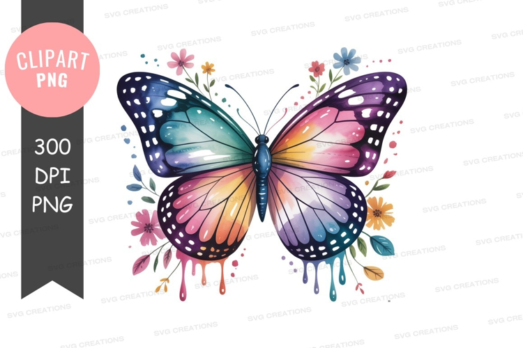 Similar Design Products to Colorful butterfly with floral accents watercolor insect