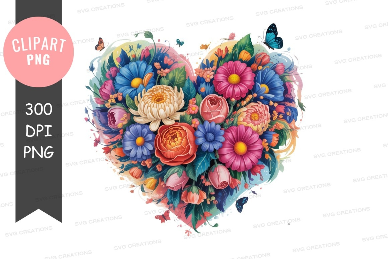 Heart shaped floral arrangement with butterflies flowers example image 1
