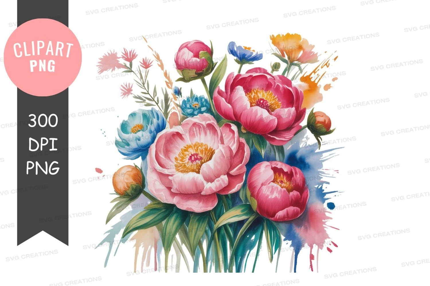 Similar Design Products to Vibrant watercolor floral bouquet clipart