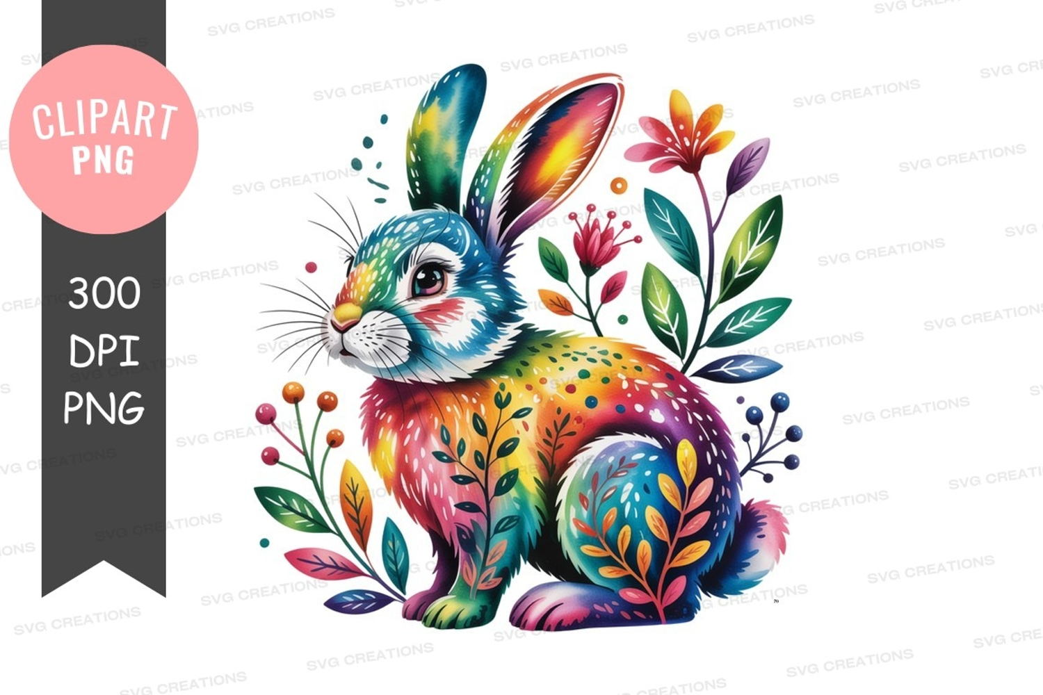 Vibrant watercolor rainbow rabbit clipart example image 1
