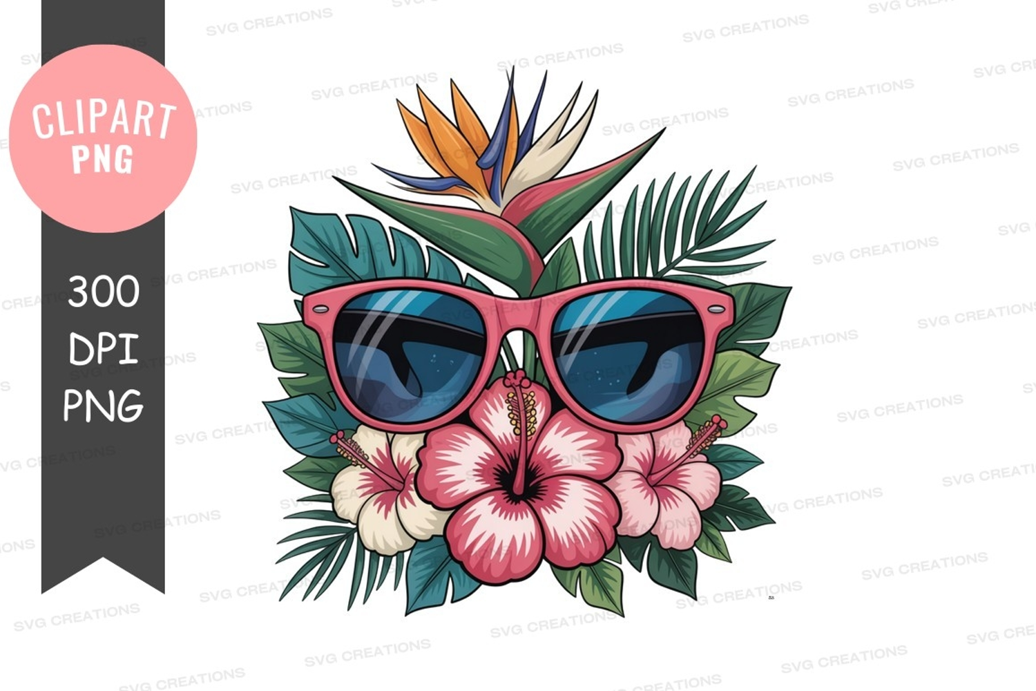 Similar Design Products to Pink sunglasses with tropical flowers clipart