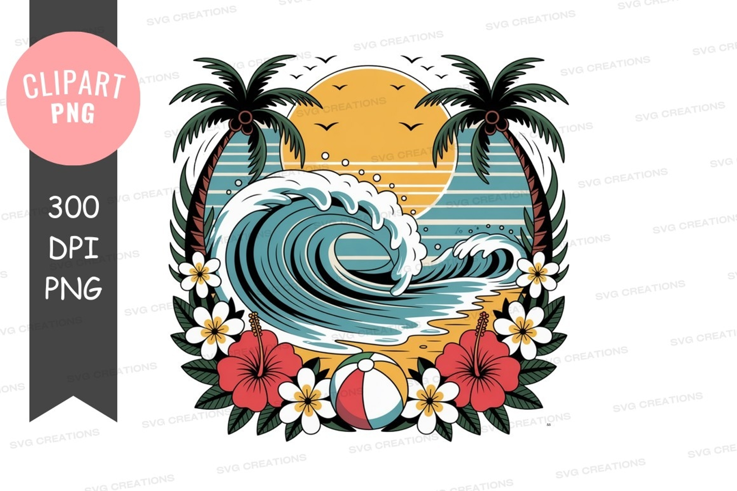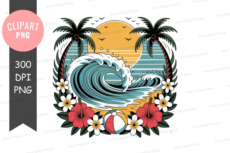 Vintage Retro Summer Surf Ocean Surfing Beach Tropical Wave Cubes