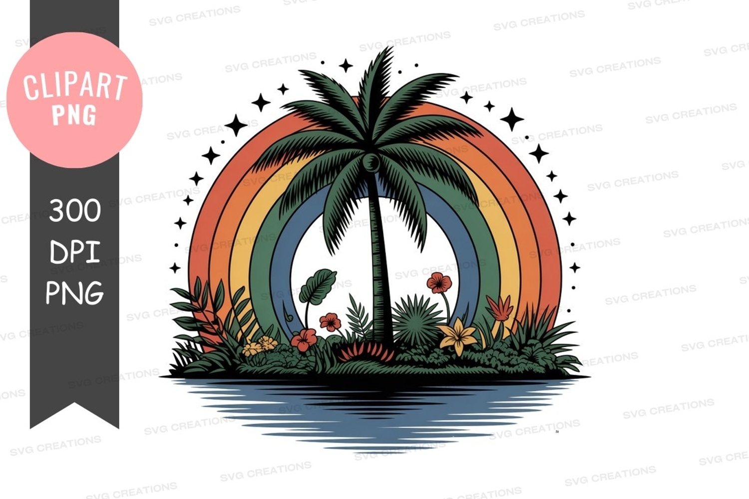 Summer Nature Beach Paradise Rainbow Palm Tree Cubes Vintage Illustration Retro Design Tropical Island