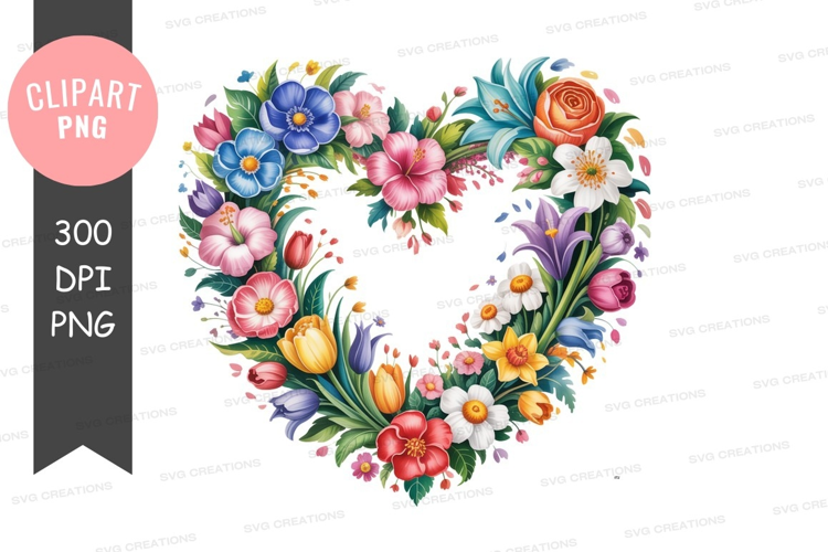 Vibrant heart-shaped floral arrangement clipart example image 1