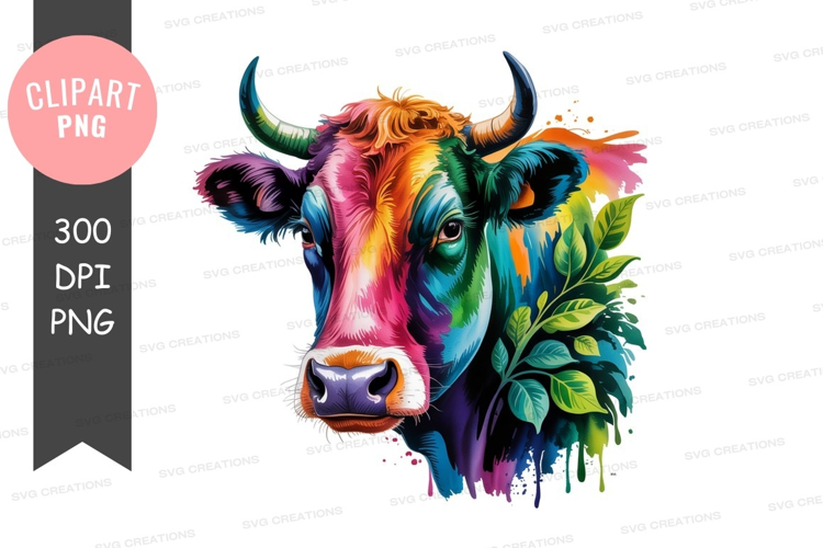 Vibrant colorful cow portrait example image 1