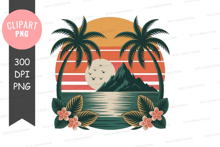Vintage Retro Summer Beach Sunset Tropical Vacation Palm Trees Cubes Gnome