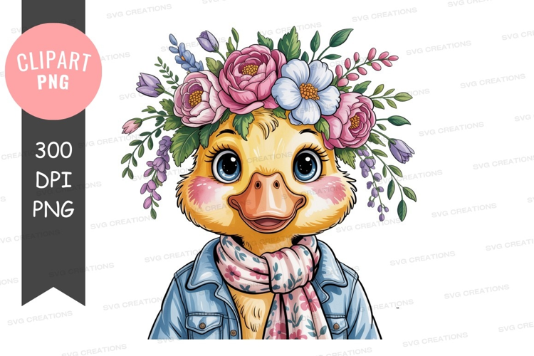 Illustration Cartoon Whimsical Cute Clipart Duck Duckling Floral Crown Animal Character Ocean Reflection