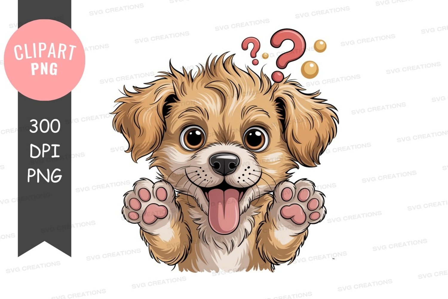 Illustration Cartoon Cute Pet Puppy Dog Curious Question Mark Confused Clippart