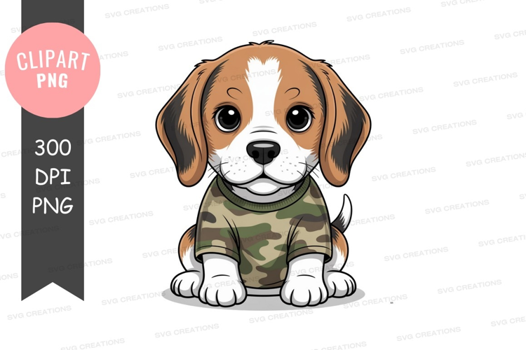 Cute beagle puppy in camouflage shirt clipart example image 1