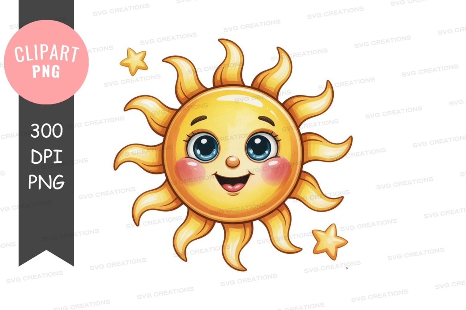 Cute cartoon smiling sun clipart with stars example image 1