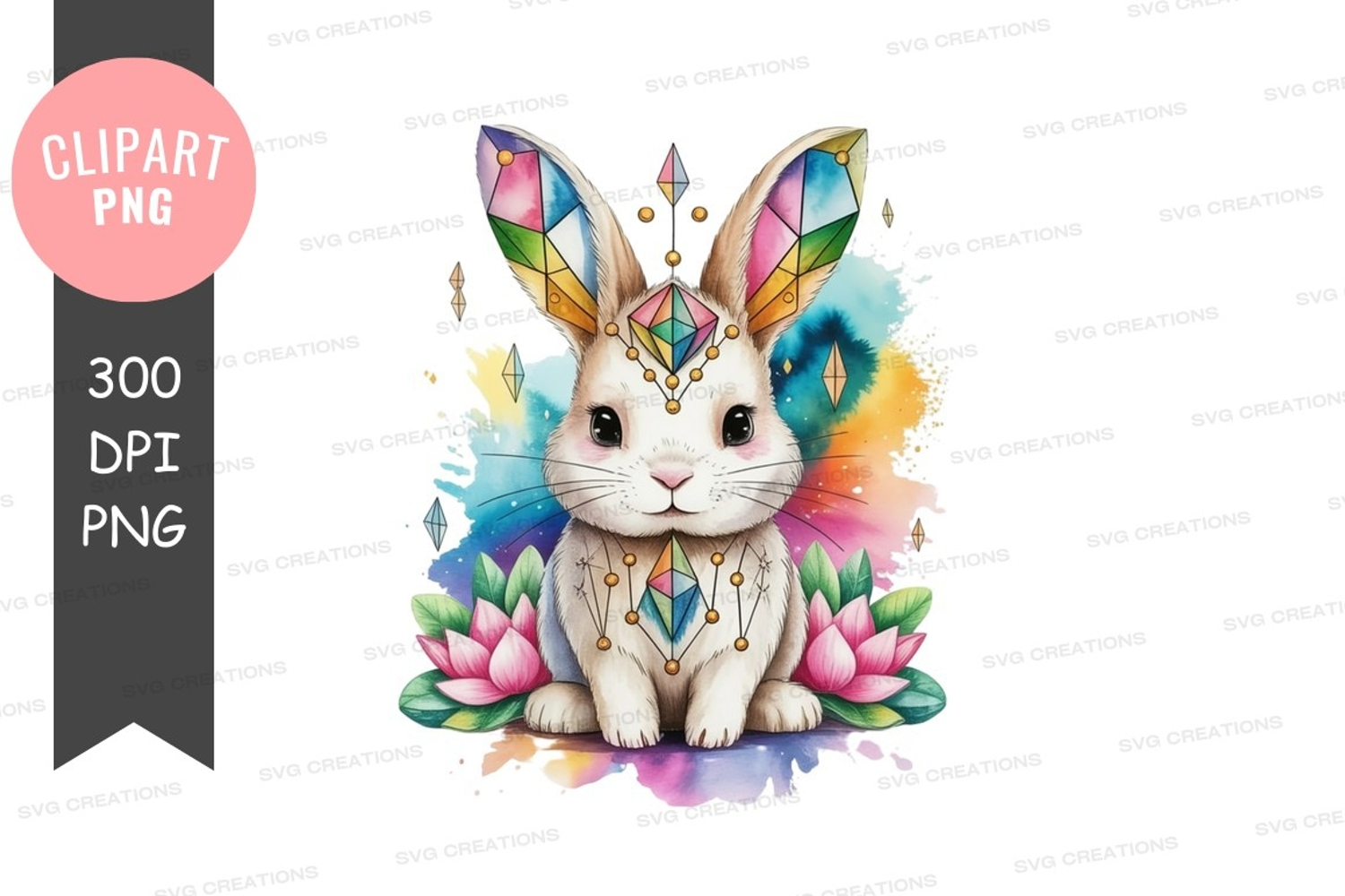 Watercolor Geometric Colorful Flowers Insect Bunny Rabbit Lotus Magical Gnome