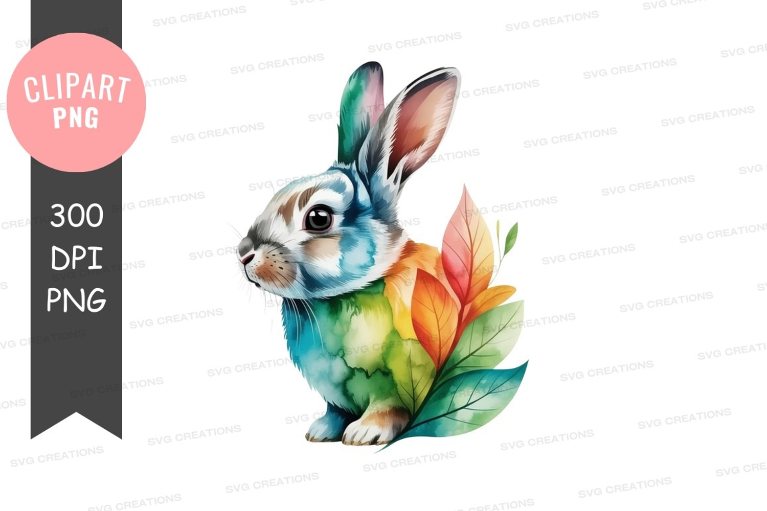 Colorful bunny with leaves clipart png example image 1