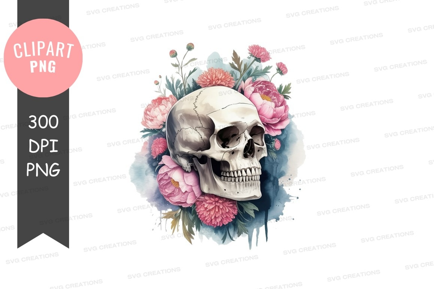 Similar Design Products to Skull with flowers clipart png