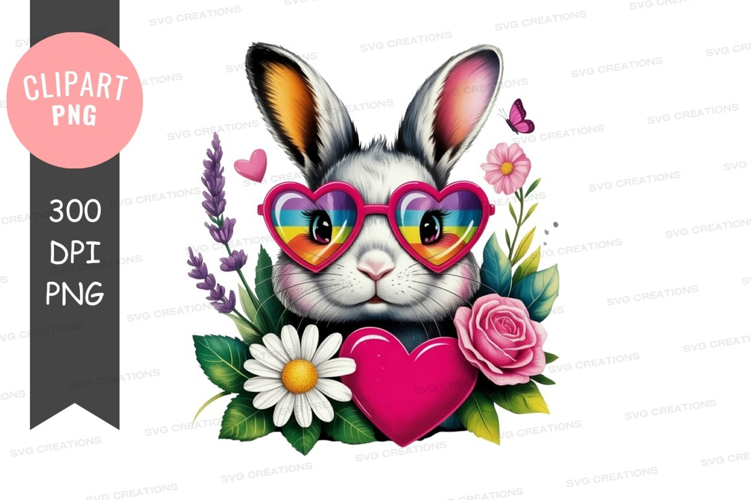 Whimsical bunny with heart-shaped sunglasses