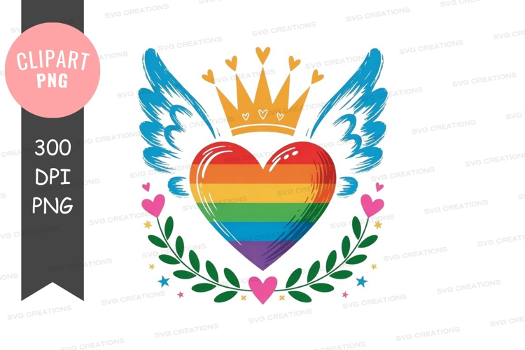Rainbow heart with wings and crown clipart png example image 1