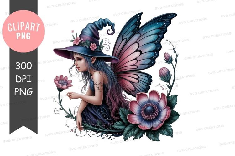 Illustration Fantasy Flowers Fairy Foliage Wings Magical Straw Hat Yorkie Pointed Hat