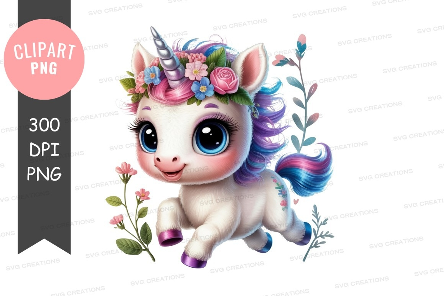 Fantasy Cute Baby Floral Flowers Clipart Png Unicorn