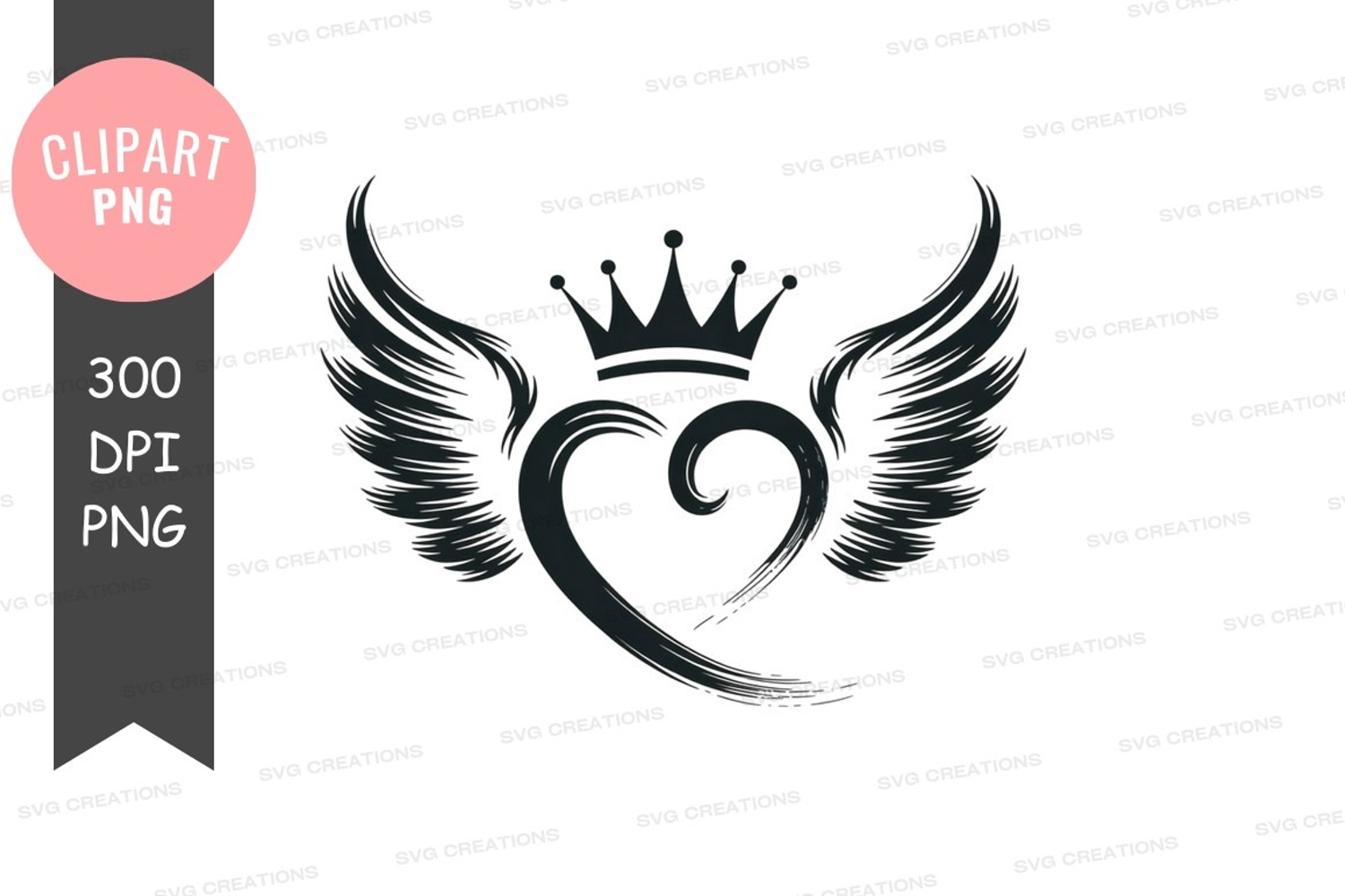 Heart with wings and crown clipart png example image 1