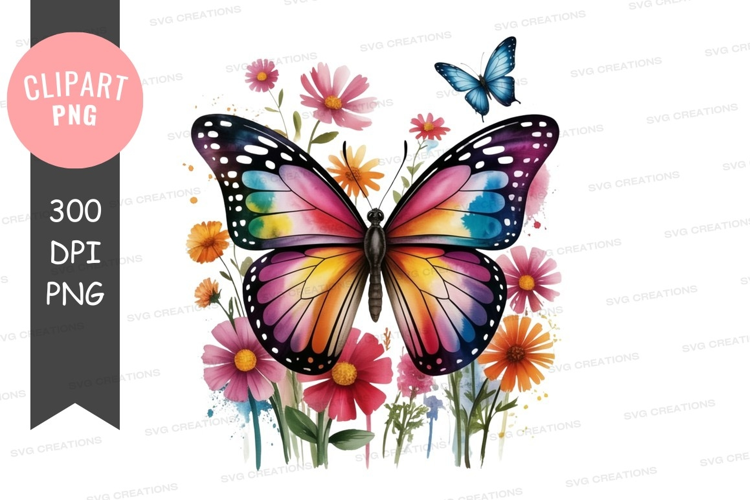 Similar Design Products to Colorful butterfly and flowers clipart png
