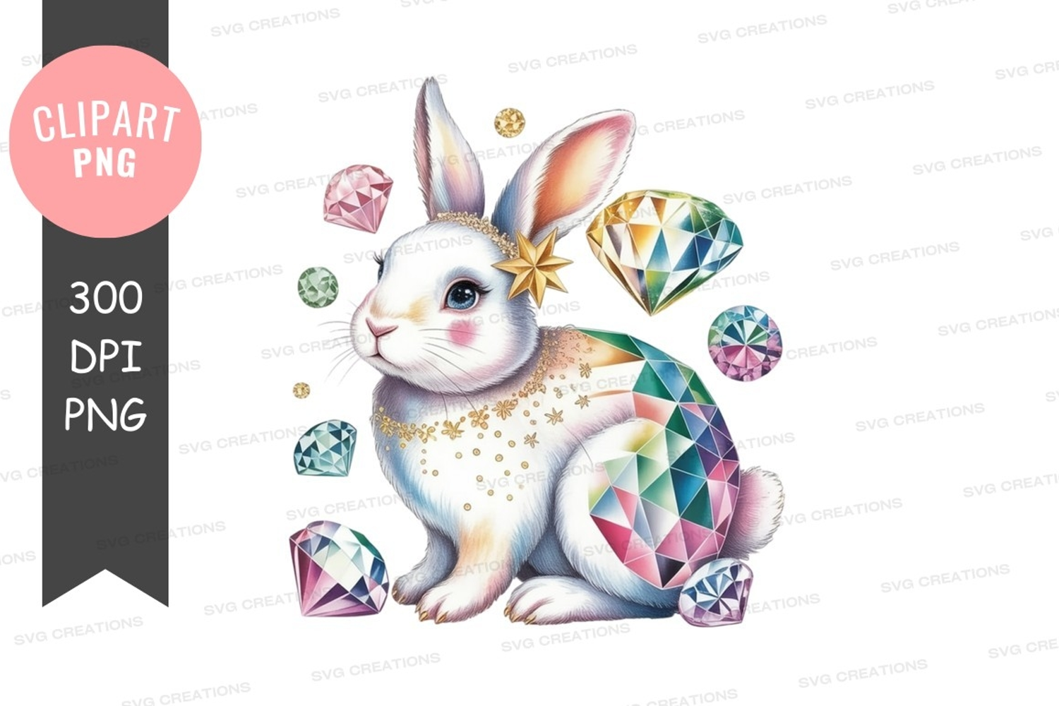 Enchanted rabbit with jewels clipart png example image 1