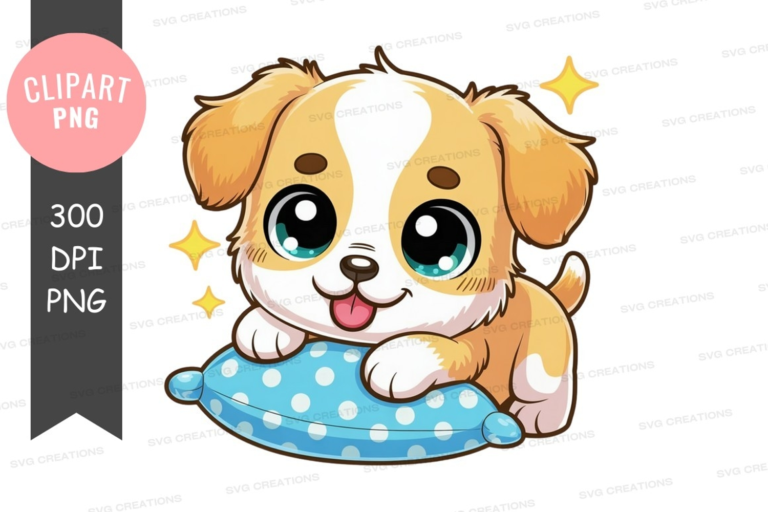 Illustration Cartoon Clipart Bow Puppy Dog Collar Shih Tzu Blue Eyes Intensity