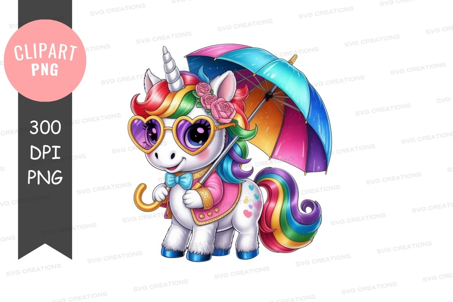 Similar Design Products to Colorful unicorn with umbrella clipart png