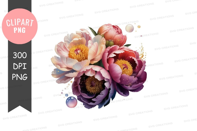 Watercolor Art Nature Flowers Peonies Bouquet Flame Clipping Wings Orbs