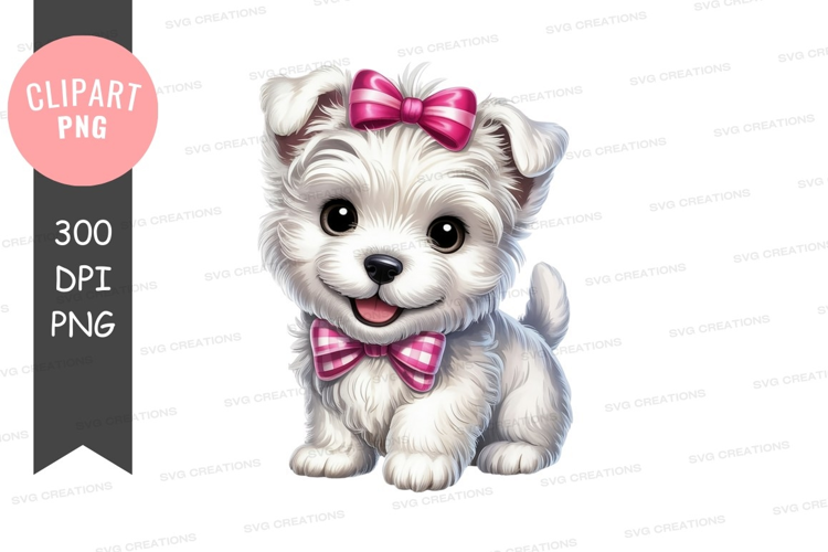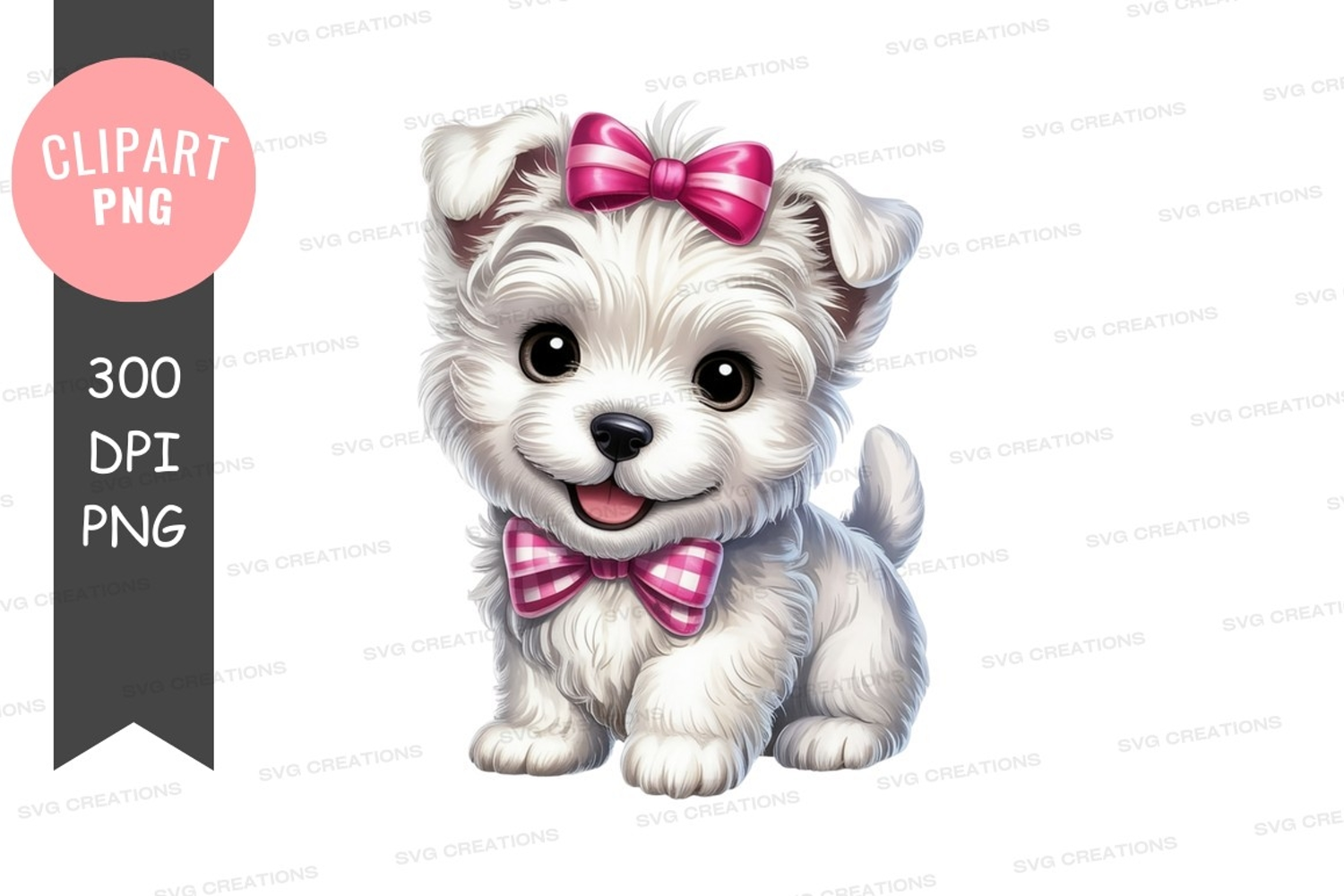 Similar Design Products to Adorable white puppy with pink bow clipart png
