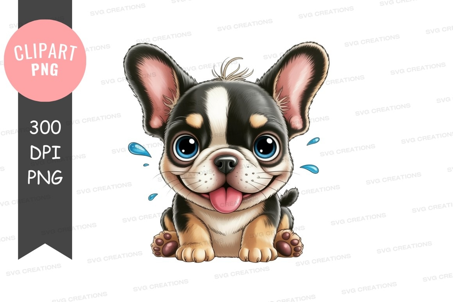 Cartoon Playful Cute Black And White Bath Puppy French Bulldog Puppy Dog Large Eyes Water Droplets