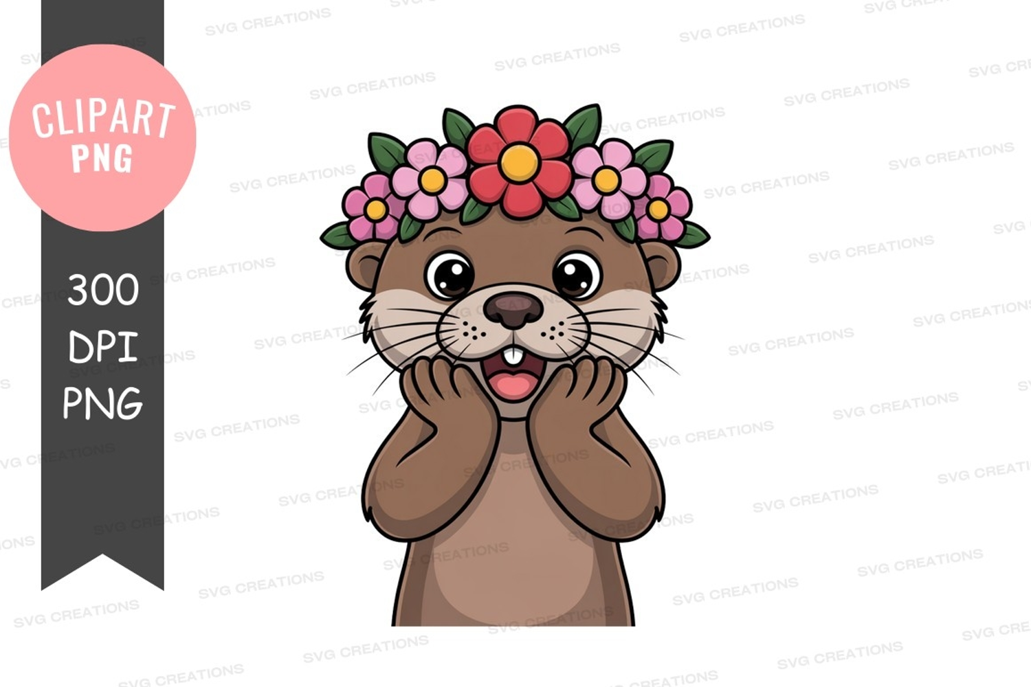 Cartoon Animal Playful Cute Happy Flower Flowers Crown Otter