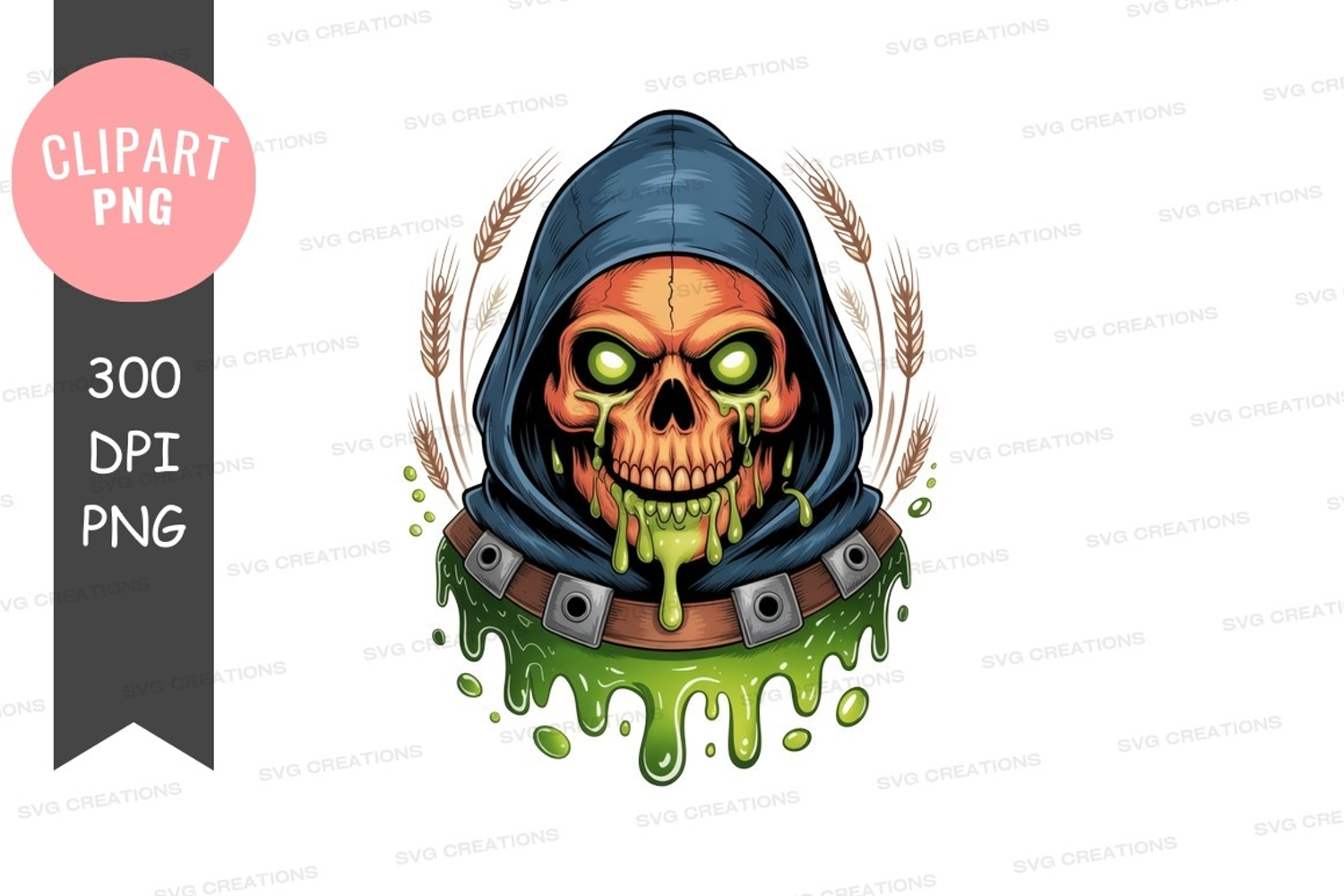 Illustration Green Skull Wheat Digital Art Grim Reaper Slime Hood Glowing Eyes