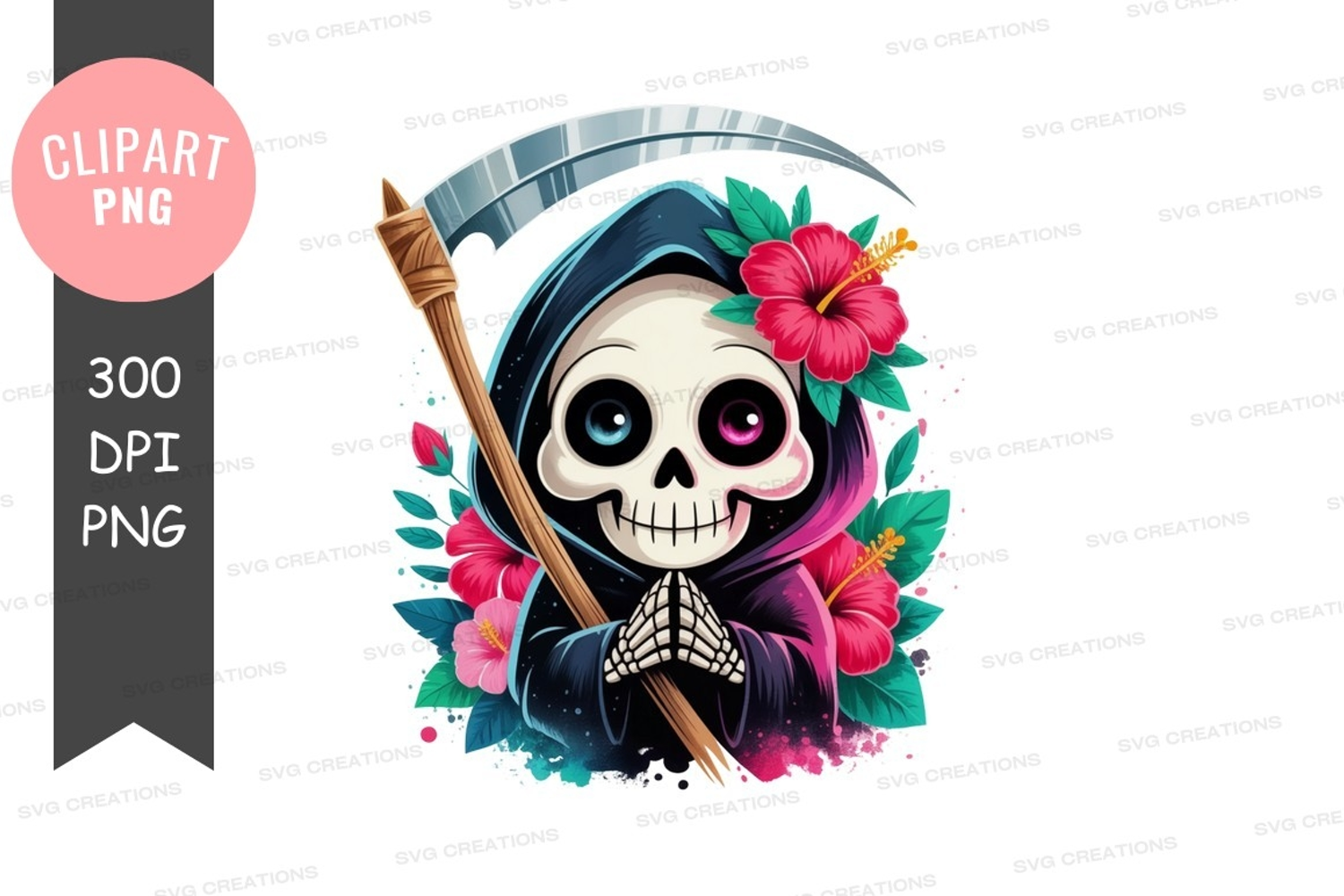 Similar Design Products to Grim reaper with tropical flowers clipart png
