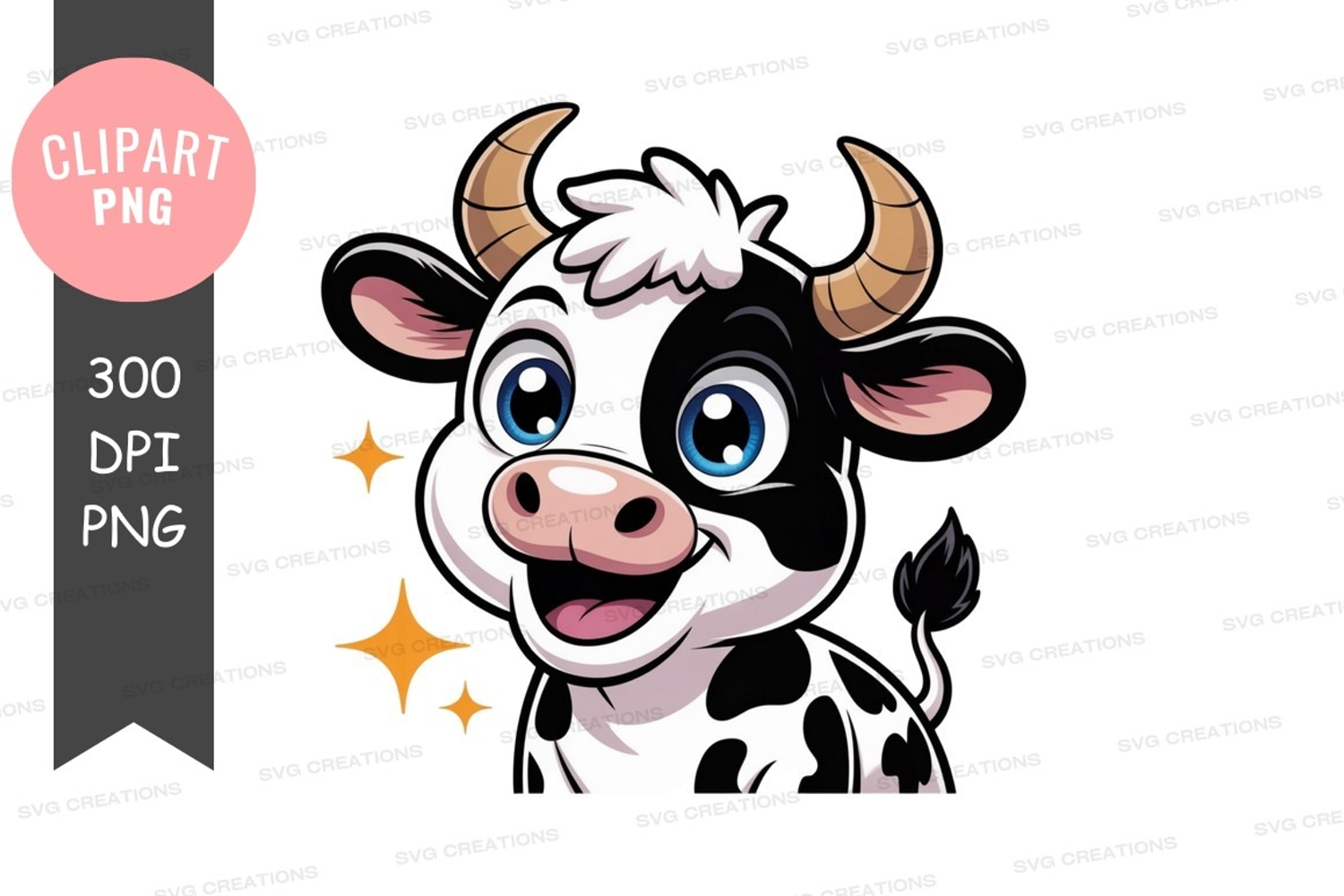 Cartoon Animal Smile Happy Clipart Horns Cow Stars Blue Eyes