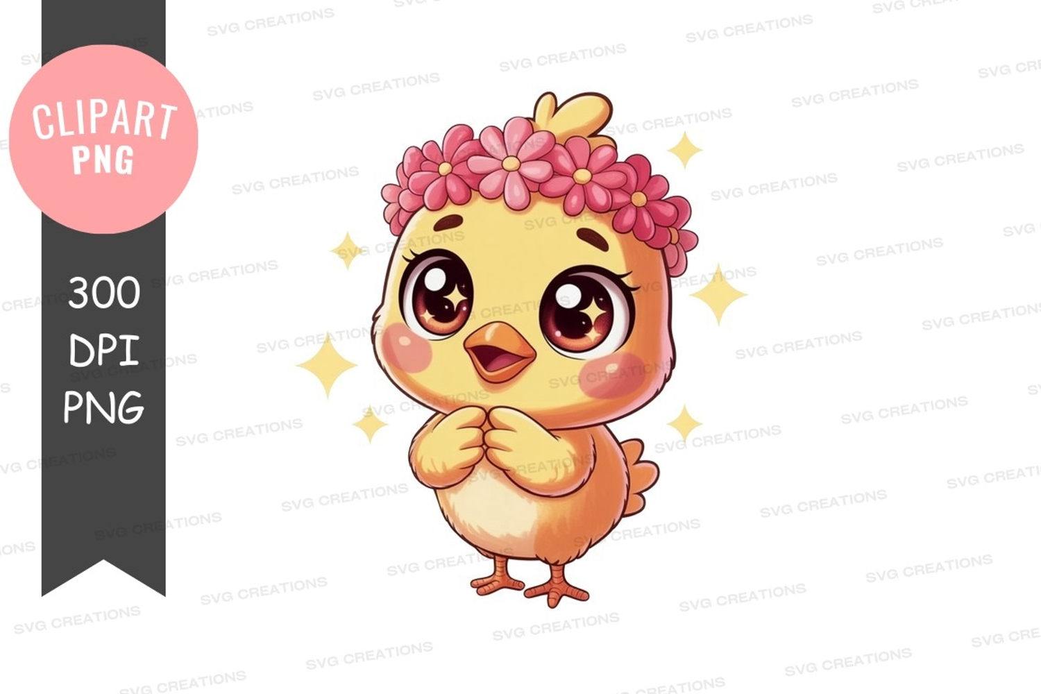 Cute chick with flower crown clipart png example image 1