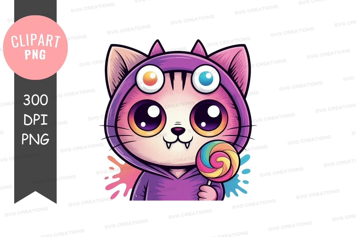 Cartoon Funny Cute Colorful Cat Lollipop Hoodie Expressive Eyes