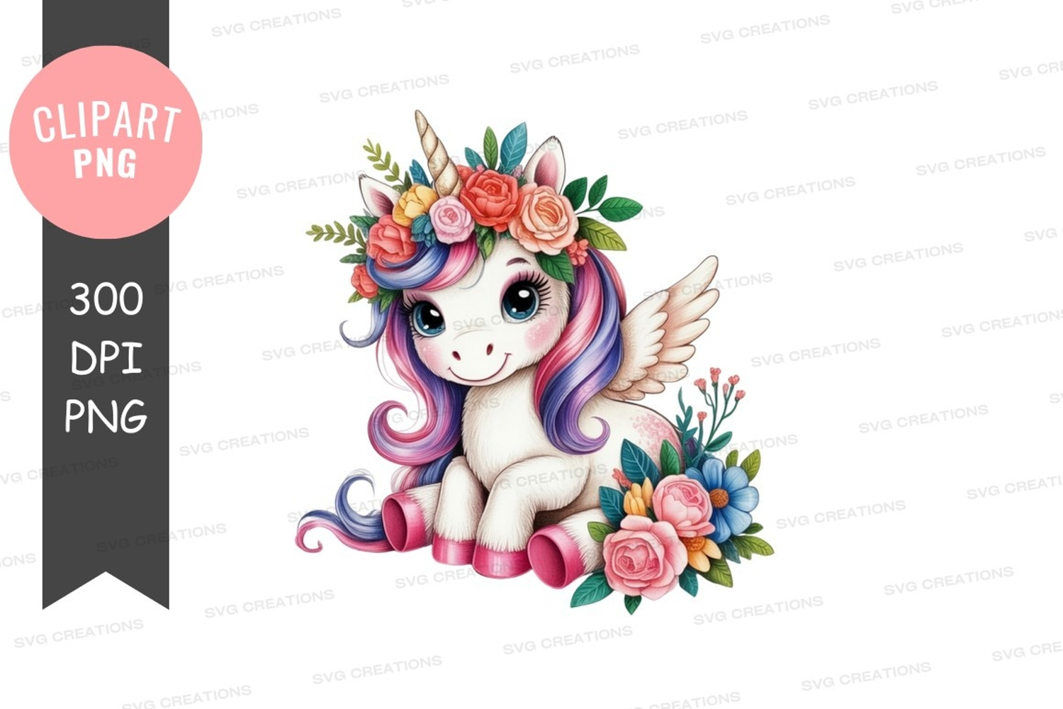Magical unicorn with floral crown png example image 1