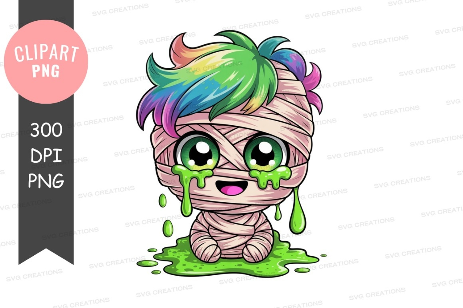 Cartoon Funny Halloween Cute Green Mummy Rainbow Slime Bandages