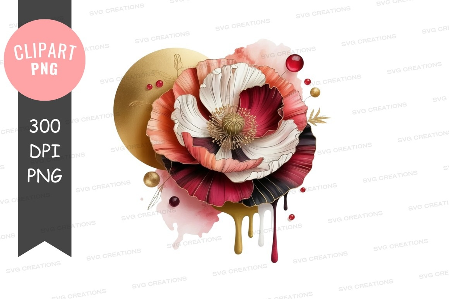Decorative Illustration Watercolor Gold Pink Nature Artistic Flower White Red