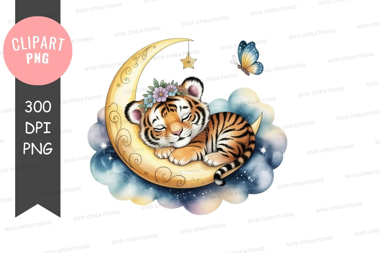 Dreamy tiger cub on the moon
