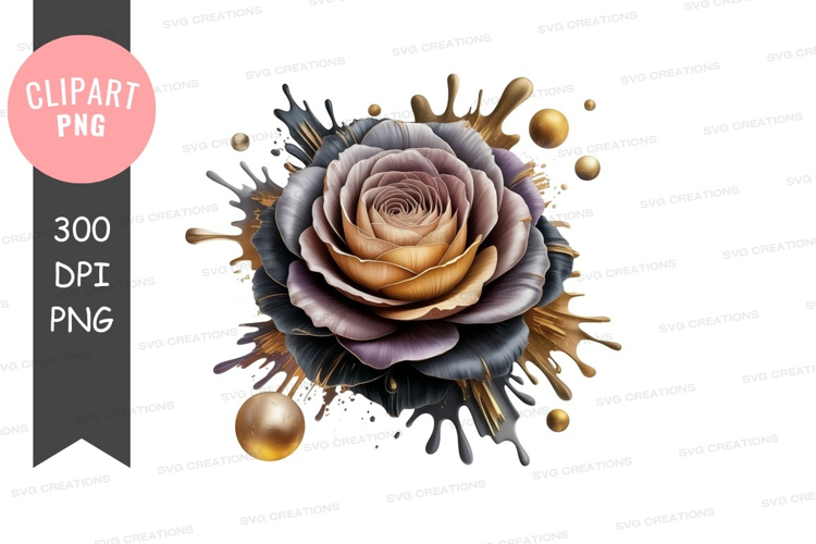 Illustration Gold Artistic Flower Splashes Rose Purple Rhino Seashells Orbs