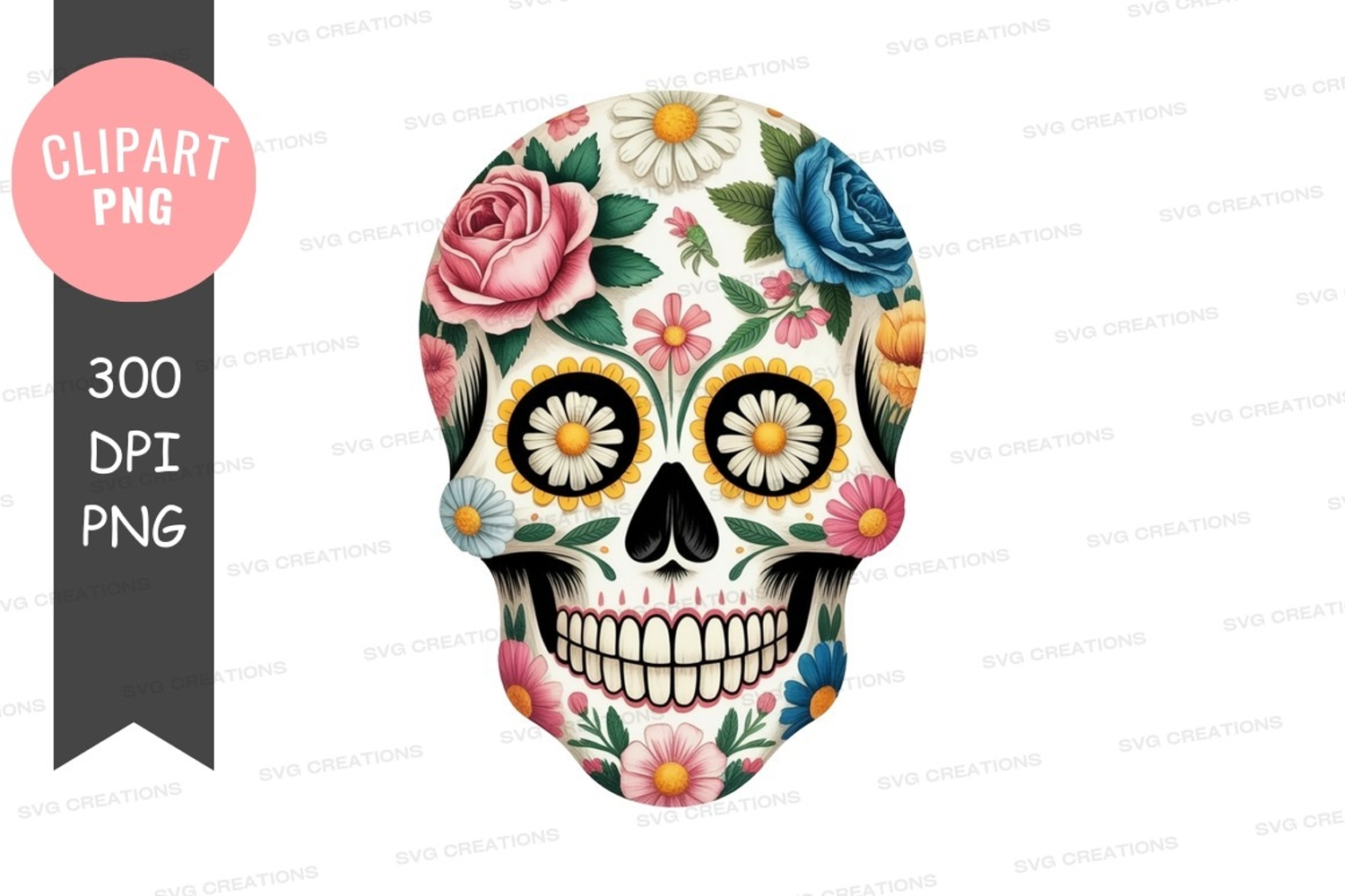 Floral sugar skull clipart png example image 1