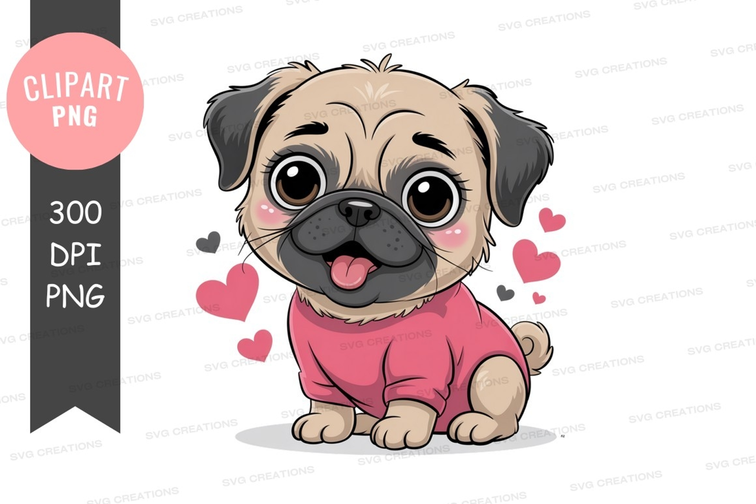 Similar Design Products to Adorable pug puppy with hearts clipart png