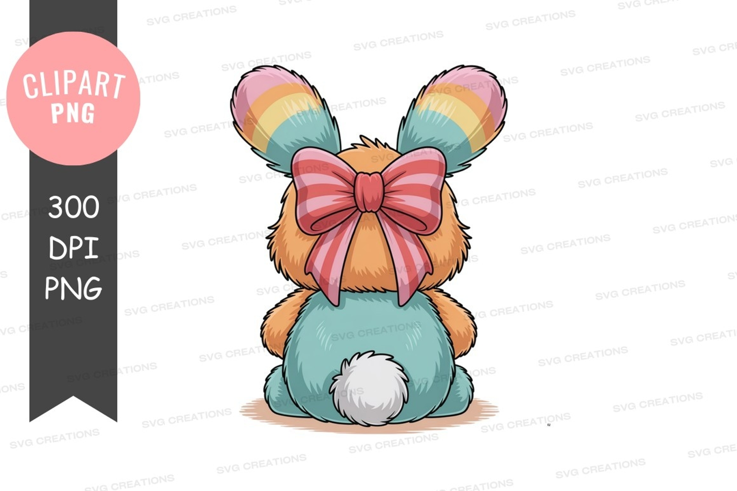 Colorful bunny with bow clipart png example image 1