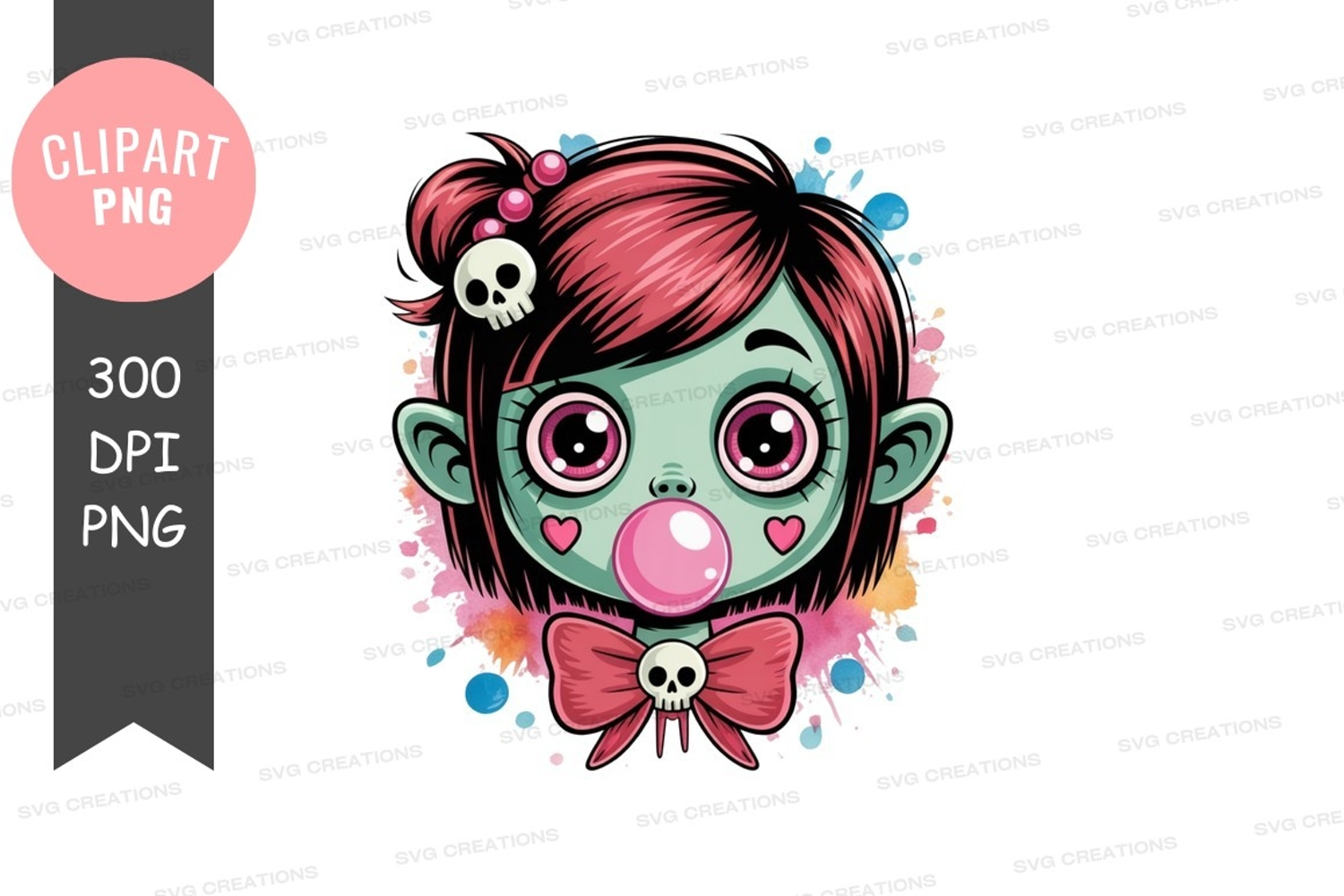 Pink Hair A Colorful And Playful Illustration Of A Girl With And Large Eyes Blowing A Bubblegum Bubble She Has