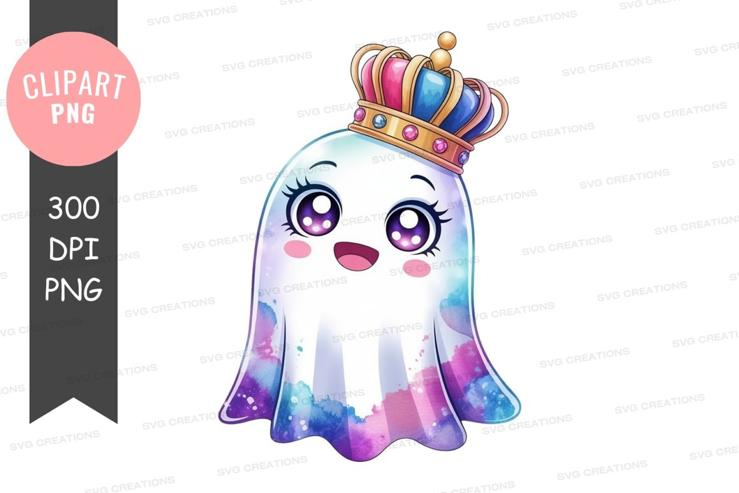 A Whimsical And Colorful Ghost Character Wearing A Designed In A Cartoon Style The Ghost Has A Frien And Its Body Is Adorned With Vibrant Colors And S
