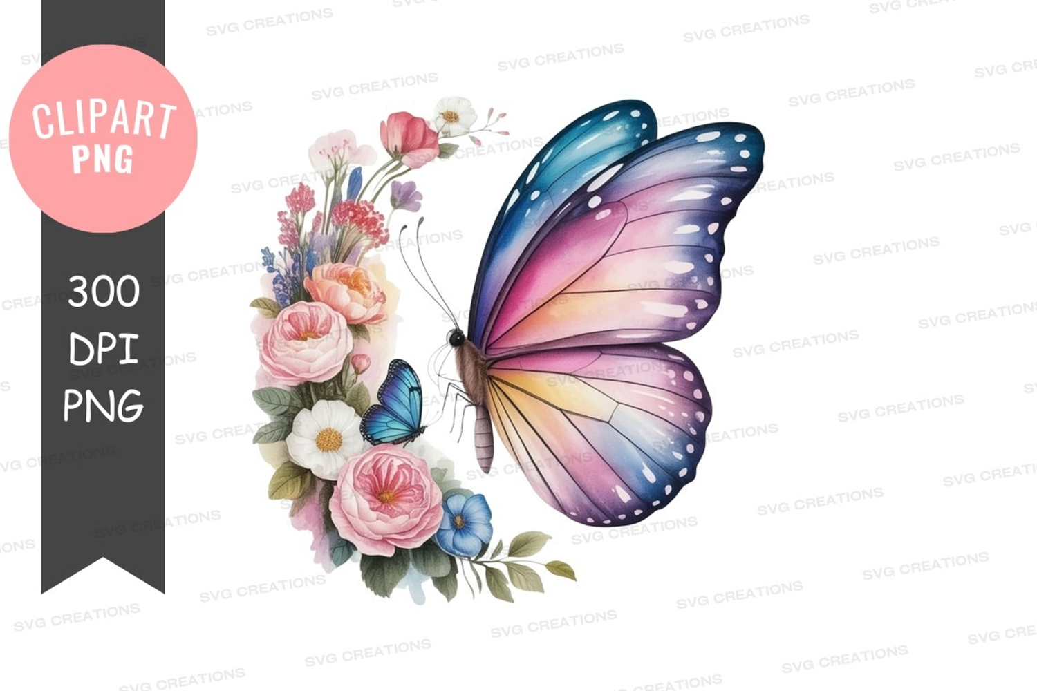 Colorful butterfly with flowers clipart png example image 1