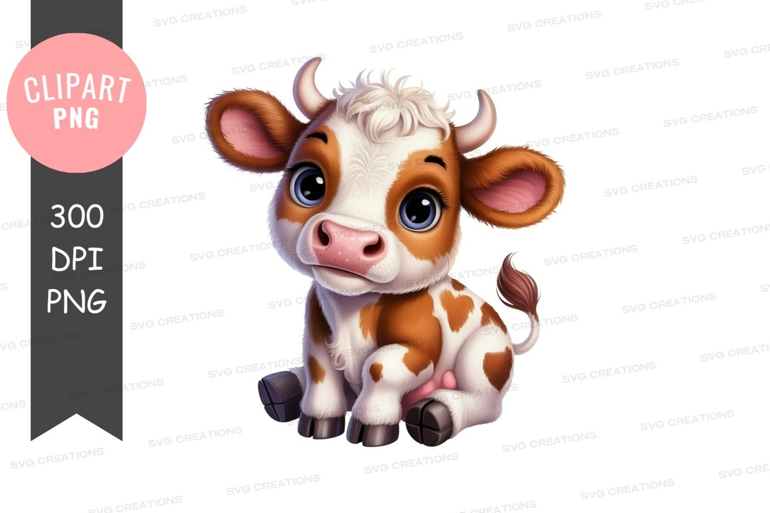 Expressive Eyes A Charming Illustration Of A Baby Cow With Large Sitting Down With A Playful And Curious Expressio